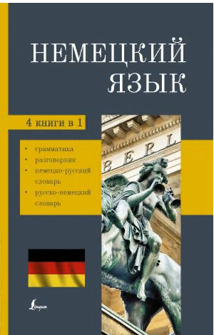 изд. АСТ, 288 стр. Данная книга представляет собой современный тип самоучителя и состоит из 4 частей, содержащих самые нужные материалы для обучения немецкому языку: раздел со сведениями по грамматике немецкого языка в предельно простом и понятном изложении, разговорник, а также немецко-русский и русско-немецкий словари.Предназначается для всех, кто интересуется немецким языком или начинает его изучать.