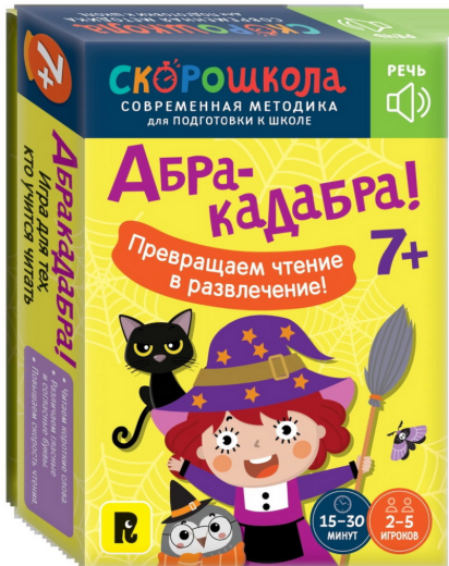 изд. Росмэн, серия — СкороШкола.              «Абракадабра» – веселая настольная игра, которая превратит обучение чтению в развлечение! Настолка поможет ребенку научиться правильно читать слова, различать г