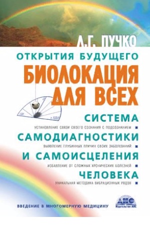 автор — Людмила Пучко, изд. АСТ, 320 стр. Предлагаемая читателю книга академика Российской и Международной инженерных академий Л.Г. Пучко «Биолокация для всех. Система самодиагностики и самоисцеления человека» является введением в основополагающий труд автора «Многомерная медицина». В ней подробно изложена единая логически стройная и научно обоснованная система (само)диагностики и (само)исцеления человека, вобравшая в себя все лучшее из накопленных человечеством за долгие тысячелетия знаний по сохранению и укреплению здоровья, с использованием наработок китайской, японской, тибетской, индийской, вьетнамской, арабской медицин, достижений современной медицинской науки и новейших открытий в области физики.