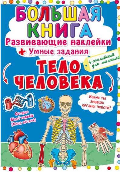 Добро пожаловать в удивительный мир анатомии! С помощью этой книги ты познакомишься с внутренними органами и системами организма человека. Ты узнаешь много нового о своём теле и начнёшь изучать английский язык. Наклей все наклейки на соо тветствующие места. Узнавай новое, учи английский и познавай окружающий мир вместе с этой книгой!