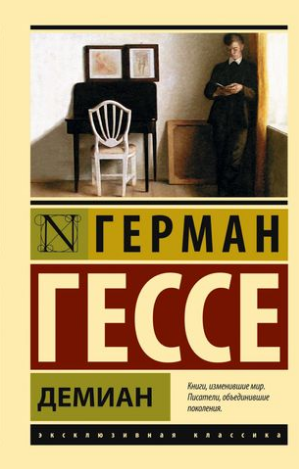 автор — Герман Гессе, изд. АСТ, серия — Эксклюзивная классика, 224 стр.   (мягкая обложка).      «Демиан» — философский роман, мрачный и мистический. Можно считать его и автобиографичным — об этом Гессе заявляет в предисловии. Знаковое произведение, оказавшее огромное влияние на дальнейшее творчество писателя, а великий Томас Манн сравнивал эту книгу со «Страданиями юного Вертера».