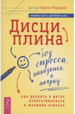 автор — Марвин Маршалл, изд. Весь, 416 стр. (мягкая обложка). Мировой бестселлер в области воспитания! Многим кажется, что сделать детей ответственными и приучить к порядку можно только методом кнута и пряника. Книга предлагает новый, революционный подход к дисциплине: вместо того, чтобы давить на ребенка наказаниями и поощрять наградами, можно научить его самостоятельно оценивать свое поведение. Не нужно быть надсмотрщиками и постоянно все контролировать, а потом мучится чувством вины. Ребенок может изменить себя сам: задача родителей и учителей — мягко направить этот процесс.