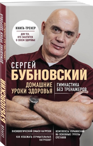автор — Сергей Бубновский, изд. Эксмо, 192 стр. (мягкая обложка). .Вы держите в руках надежного помощника для тех, кто понимает, что движение – это жизнь. Специально разработанные системы упражнений от доктора Бубновского можно выполнять при помощи простых вспомогательных средств дома, во время отпуска или длительных командировок.