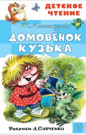 автор — Татьяна Александрова, Художник — А. Савченко, изд. АСТ, серия — Детское чтение, 128 стр. В книгу Т. Александровой «Домовёнок Кузька» вошли две части знаменитой сказочной повести про домовых: «Кузька в новом доме» и «Кузька в лесу», из которых читатели узнают, как Кузя появился в квартире и как ему жилось до этого в домике в деревне и среди леших в лесу. В книге много прибауток, поговорок и старых русских слов, что поможет мальчикам и девочкам обогатить словарный запас и проникнуться богатством родного языка.