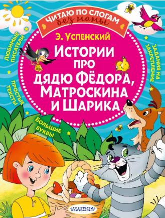 автор — Эдуард Успенский, изд. Малыш, серия — Читаю по слогам без мамы, 80 стр. (мягкая обложка). В серии «Читаю без мамы по слогам» собраны короткие истории и сказки любимых детских писателей, оптимально подходящие для первого чтения.