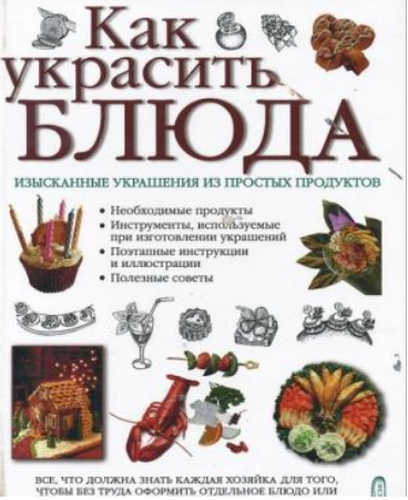 изд. Эксмо, 120 стр.      Книга, которую вы сейчас держите в руках, — о том, как сделать нашу жизнь чуть радостнее, как превратить простую трапезу в изысканный обед, как этот обед эффектно подать. Здесь рассказывается об украшении стола. Прием пищи — это не только наша основная потребность. Это еще и приятный повод собраться вместе, за одним столом, дружеской компанией. И неважно — обед ли это, завтрак или ужин, повседневный или праздничный. Он может запомниться надолго, подготовленный умелыми руками хозяйки, прочитавшей эту книгу…