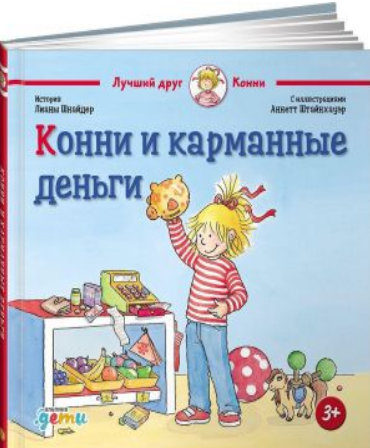 автор — Лиана Шнайдер, изд. Альпина, 32 стр. Конни решила, что она уже достаточно большая, чтобы у нее были карманные деньги. Ведь ей хочется купить столько новых игрушек! Но на пару рублей пони не купишь, надо копить. На примере Конни разберите с малышом, какие есть деньги, что такое банковские карты и как с их помощью можно копить на новые игрушки. Вместе с Конни ваш малыш: • разберётся в том, какие в России бывают бумажные деньги и монеты. • научится планировать свои расходы. • станет более самостоятельным и ответственным. • сделает первую покупку на собственные деньги.