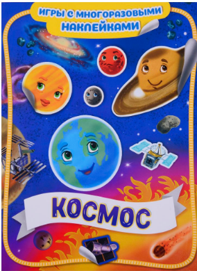 изд. Росмэн, 4 стр.   (мягкая обложка).      Изучай удивительный мир космоса, созвездий и далеких планет! Играя с этой книжкой, малыш узнает много нового, потренирует мелкую моторику и разовьет воображение. Чтобы выполнить игровое задание, ребенку необходимо найти нужные наклейки и приклеить их на панорамную картинку. Многоразовые наклейки можно переклеивать сколько угодно раз!