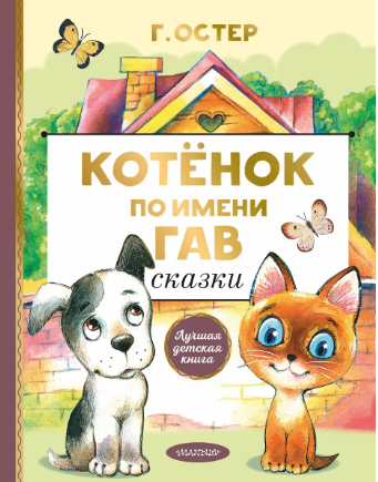 автор — Григорий Остер, изд. Малыш, серия — Лучшая детская книга, 128 стр. Размер 1.4×16.7×21.7. В этой книге много маленьких зверушек. Самый удивительный среди них — котёнок по имени Гав. Наверное, тот, кто его так назвал, хотел посмеяться. А вместо этого наградил его уравновешенным, смелым характером. Пока взрослые кошки и собаки ссорятся и воруют еду друг у друга, щенок и котёнок вместе играют и обедают одной сосиской пополам. Именно это и называется дружбой. В книгу вошли другие сказки для малышей Григория Остера.