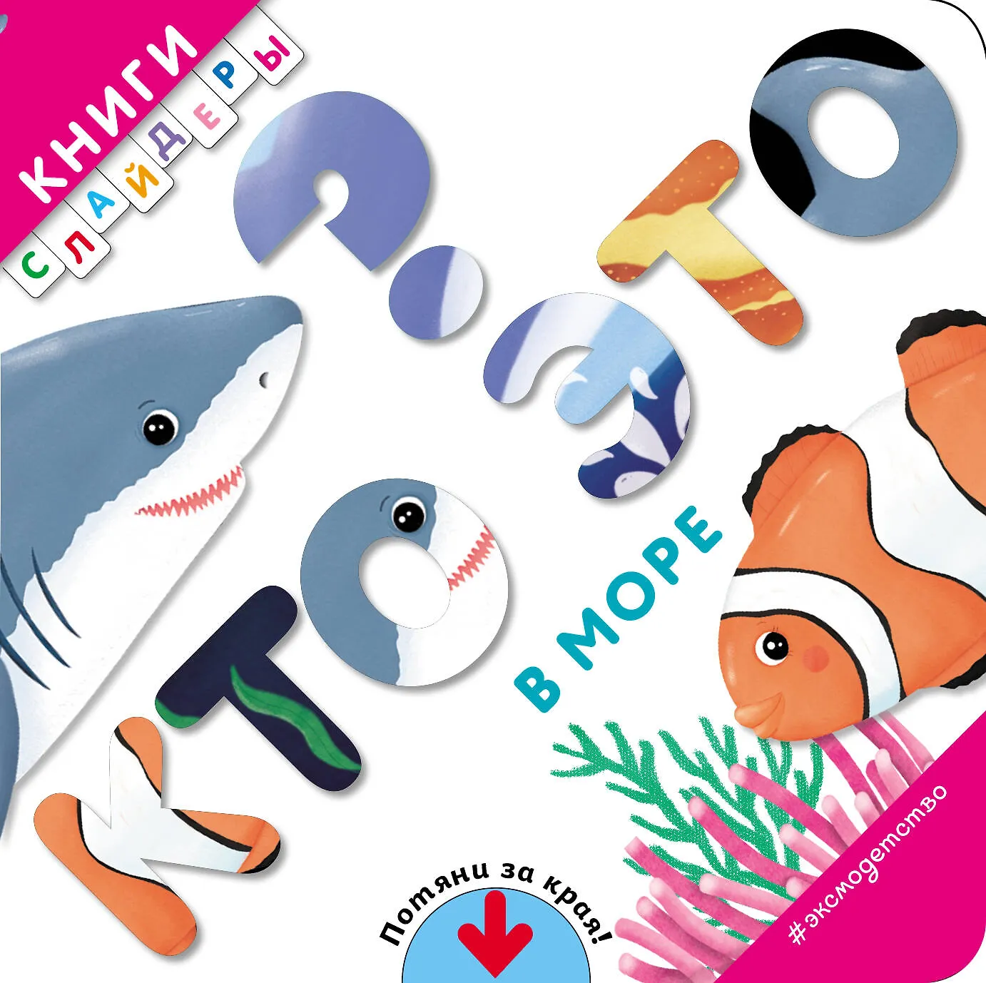 изд. Эксмо, серия — Книги-слайдеры, 8 стр. (Картон). Представляем вам интересную и развивающую книжку-игрушку, с помощью которой ваш малыш легко выучит морских животных. На каждой странице ему предстоит раздвигать страницы, чтобы получилось целое изображение, а затем найти животное по описанию.