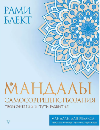 автор — Рами Блект, изд. АСТ, 64 стр. (мягкая обложка). «В стремительном потоке ежедневных забот, тревог и стресса порой так трудно найти оазис умиротворения и гармонии, познать себя и раскрыть свой потенциал. Позвольте же себе замедлить привычный ритм и погрузиться в творческий процесс раскрашивания мандал, наполниться энергией и почувствовать уверенность в себе.