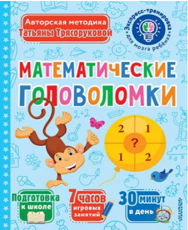 автор — Татьяна Трясорукова, изд. АСТ, 48 стр. (мягкая обложка). Книга опытного педагога и психолога Т. Трясоруковой поможет подружить с математикой ребёнка 5-7 лет. Он поймёт, что математика — это совсем не сложно и даже очень интересно! Калейдоскоп увлекательных головоломок привлечёт внимание даже самых шустрых непосед. Ребёнок будет с удовольствием заниматься сам. Занятия с книгой заложат основы математического мышления, прочный фундамент для успешного обучения в школе.Для дошкольного возраста.