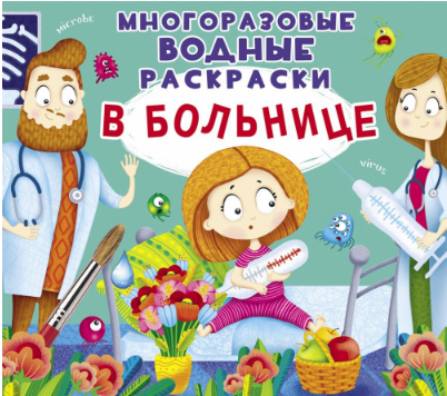 изд. Кристал Бук, 8 стр. Малыш, ты держишь в руках удивительную многоразовую раскраску! С ней ты станешь настоящим волшебником! Достаточно провести мокрой кисточкой по чистому листу, как он превратится в яркий рисунок. Однако на этом чудеса не заканчиваются — дай изображению полностью высохнуть, и оно исчезнет! Ты можешь повторять этот фокус снова и снова — с нашей раскраской скучать не придётся! Уважаемые родители! Не беда, если ребёнку ещё сложно управляться с карандашами или красками, для рисования в этой книжке понадобятся только вода и кисточка. А благодаря весёлым стишкам ваш малыш перестанет бояться врачей и больниц.