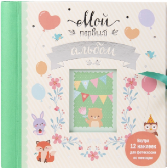 изд. Росмэн, 44 стр. Замечательный подарок к рождению ребенка! В этом альбоме с нежными иллюстрациями есть все необходимое, чтобы сохранить драгоценные воспоминания о первом годе жизни малыша: конверты для памятных вложений, места для вклеивания фотографий и для записей о главных событиях первого года жизни. А еще мам и пап ждет приятный сюрприз — 12 крупных наклеек для фотосессии первого года!