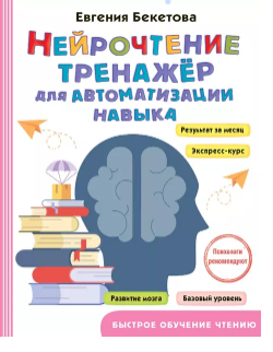 автор — Евгения Бекетова, изд. АСТ, серия — Быстрое обучение чтению, 256 стр. Читать не только интересно, но и полезно! Этот навык улучшает работу мозга, повышает уровень интеллекта. В книге представлена авторская методика нейрочтения Евгении Бекетовой — педагога, психолога и опытного брейн-тренера. Система увлекательных упражнений позволит всего за месяц значительно увеличить скорость восприятия информации, улучшить понимание прочитанного, а также прокачать память и внимание. Для тех, кто не хочет останавливаться на достигнутом, предусмотрен еще месяц занятий на более сложном уровне. Бонусные задания доступны по QR-коду. Это не просто книга, а ваш личный брейн-тренер!