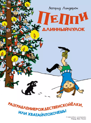 автор — Астрид Линдгрен, изд. Азбука, 36 стр.  Размер 1×21.5×29.3. Кто не знает Пеппи Длинныйчулок — весёлую выдумщицу и озорницу с рыжими косичками и веснушками на носу! Истории о том, как Пеппи поселилась в вилле «Курица» или как она оказалась в стране Веселии, любят дети во всех странах мира. А в этой книге вы прочитаете ещё одну сказочную историю про Пеппи — о том, как однажды она устроила для детей необычную рождественскую ёлку на Вилле Вверхтормашками.