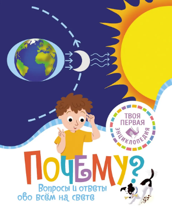 автор — Кэти Франко, изд. Махаон, серия — Твоя первая энциклопедия, 96 стр. Из этой книги юные читатели узнают, почему звёзды светятся, зачем свистят сурки, из-за чего человек икает, чем опасна молния и что же не так с числом 13! Ответы на самые разные вопросы помогут любознательному ребёнку расширить кругозор и познакомиться с удивительными фактами об окружающем мире. В книге пять интереснейших разделов, которые расскажут о природных явлениях, теле человека, мире животных, достижениях науки и культуре разных стран. В книгах серии – только самая актуальная информация и самые современные иллюстрации! И это ещё не всё: в конце каждой книжки собраны увлекательные задания и игры, которые помогут весело провести время и повторить изученное.
