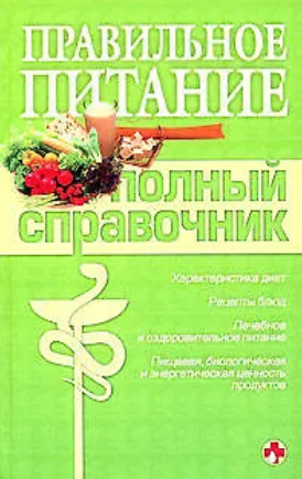 изд. Эксмо, 704 стр. В данном справочнике представлены самые полные и актуальные сведения по правильному питанию. Приведены основные принципы рационального питания. Дана пищевая, биологическая и энергетическая ценность продуктов. Подробно описаны принципы лечебного питания при различных заболеваниях, а также оздоровительного питания для детей и беременных женщин. Представлены варианты диет и рецепты блюд, способствующие снижению избыточного веса, очищению и общему оздоровлению организма. Дана характеристика вегетарианства, раздельного и натурального питания. Издание предназначено для широкого круга читателей.