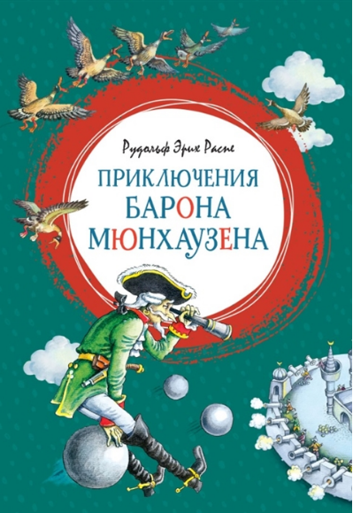 автор — Рудольф Эрих Распе, изд. Махаон, серия — Яркая ленточка, 96 стр.  (интегральный переплет).      Барона Мюнхаузена знают во всём мире – он прославился рассказами о своих необыкновенных приключениях. Согласитесь, вряд ли кому ещё удастся поджечь порох искрами из глаз или забраться по стеблю боба на Луну! А кто не помнит его историй о полёте на ядре или о дереве на рогах оленя, которое выросло из вишнёвой косточки?! Несмотря на всю их неправдоподобность, мы тем не менее в них верим. Как верил в них сам барон Мюнхаузен, «самый правдивый человек на земле»!