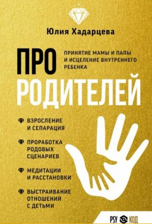 автор — Юлия Хадарцева, изд. АСТ, 224 стр. Как принять родителей на глубинном уровне и при помощи этого улучшить все сферы своей жизни? Как исцелить негативные родовые программы? Чем отличается отцовская и материнская любовь? На эти и другие вопросы вы найдёте ответы в книге «Про родителей». Ее автор Юлия Хадарцева — лидер в системе метода расстановок в России, мировой рекордсмен по расстановкам, кандидат психологических наук, эксперт федеральных каналов, а также автор тренингов и марафонов, которые прошли более 35 000 человек. Книга «Про родителей» — это база, которую нужно знать и понимать каждому. В ней автор дает глубокие расстановочные упражнения. Выполняя их, вы примете своих родителей, поймете их ценность, и ваша жизнь начнет меняться. Вы обретете счастье и сами сможете стать эмоционально-устойчивым родителем. В книгу включены ценные материалы, переданные Юлии ее учителем Бертом Хеллингером, немецким психотерапевтом, специализирующимся на семейных расстановках. Вся серия книг Юлии построена на практическом подходе, поэтому мы также рекомендуем вам прочесть книги «Про деньги» и «Про секс».
