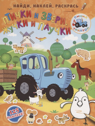 изд. АСТ, 16 стр.  (мягкая обложка).        Синий трактор — известный персонаж развивающего мультпроекта, собравшего миллионы просмотров и подписчиков в сети Интернет. На страницах книги «Птички и звери, жучки и паучки» малыши встретят героев полюбившихся мультфильмов, поиграют с наклейками, выполнят увлекательные задания. А ещё здесь есть раскраски, которые нравятся абсолютно всем детям.