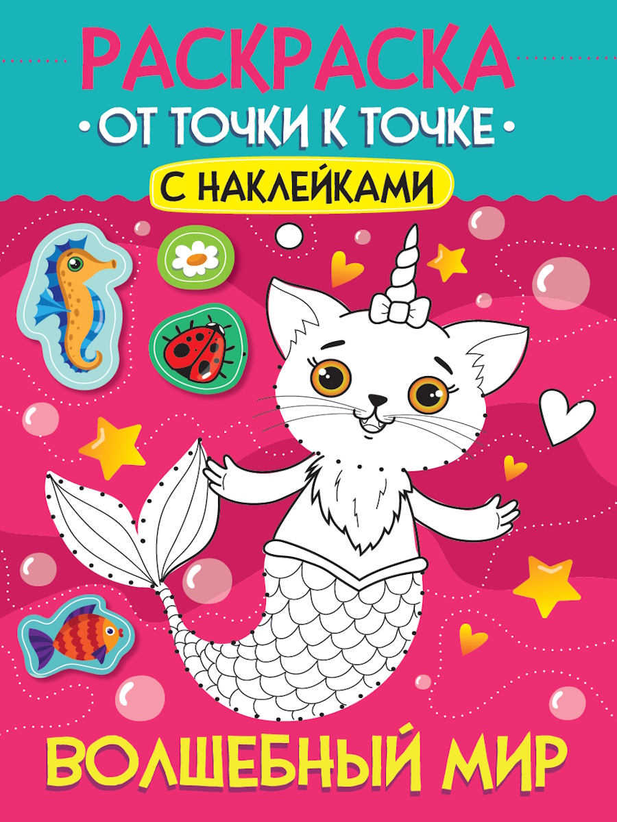 Раскраска. От точки к точке с наклейками. Волшебный мир