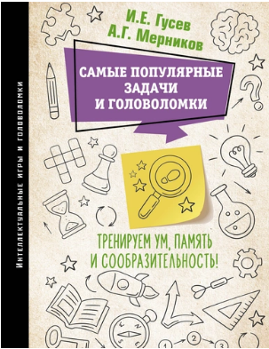 авторы — Игорь Гусев, Андрей Мерников, Андрей Ядловский, изд. АСТ, серия — Интеллектуальные игры и головоломки, 336 стр. В этот сборник вошли оригинальные головоломки, непохожие на тривиальные обучающие задачи, – для их решения вам понадобится не только знание математических формул, но и вся ваша смекалка и потенциал мышления. Вы сможете значительно обогатить копилку хитрых математических приемов, пригодных в том числе и для решения бытовых задач. Вместе с этой книгой вы пройдете путь нестандартных решений, развивающих ум, память, внимание, логику и сообразительность.