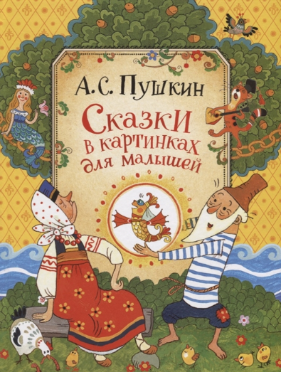 автор — Александр Пушкин, изд. Росмэн, 128 стр. А. С. Пушкин писал свои сказки не для детей, однако они давно стали классикой именно детской литературы. Уникальность этого издания состоит в том, что оно подготовлено с учетом особенностей детского восприятия: текст разбит на небольшие фрагменты и каждый из них проиллюстрирован. Это помогает малышу не только лучше воспринимать услышанное, усваивать, запоминать, но и делает совместное чтение интересным и занимательным. В книгу вошли «Сказка о рыбаке и рыбке», «Сказка о попе и о работнике его Балде», «Сказка о золотом петушке», а также отрывок из поэмы «Руслан и Людмила» «У лукоморья дуб зеленый».