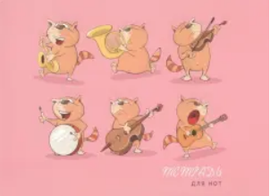 Тетрадь для нот, 16 листов, формат А5, горизонтальная.