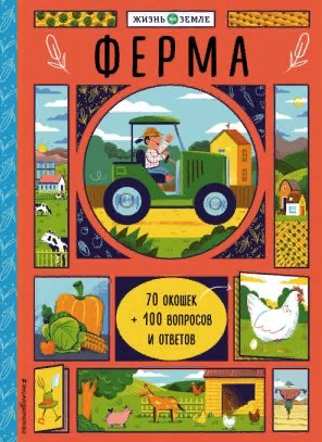 автор — Александер Хизер, серия — Жизнь на Земле, изд. Эксмо,  16 стр.         Эта книга наверняка станет одной из самых любимых у вашего малыша, ведь она не простая, а интерактивная: содержит 100 вопросов с ответами и 70 открывающихся окошек. Путешествуя по страницам книги, малыши узнают, откуда берётся молоко, как из пшеницы делают хлеб и что растёт на полях. А открывая каждое окошко, расположенное на страницах книги, дети получат ещё массу дополнительной информации, которую они непременно запомнят.