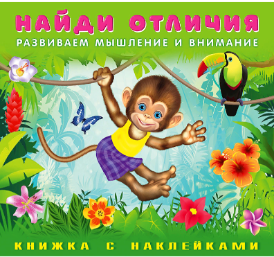 Книга «Обезьянка» из серии «Найди отличия с наклейками»— это пособие с одноразовыми наклейками, весёлыми иллюстрациями и простыми заданиями для развития внимания, мышления и мелкой моторики. В брошюре 5 разворотов с заданиями и 2 листа с 60-ю наклейками. Малышу предстоит сравнить два рисунка на каждом разворот и дополнить их с помощью наклеек. Все книги имеют компактный формат 20х18,5см. и издаются в мягкой тонкой обложке на скрепке.
