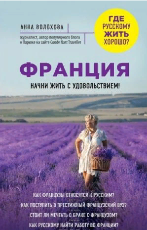 автор — Анна Волохова, изд. Эксмо, 352 стр. (мягкая обложка). Если вы… не видите вашу жизнь без фуа-гра, шабли и трюфелей, хотите учиться во Франции и не знаете, с чего начать, верите в то, что французы — самые галантные мужчины в мире, любите отдыхать на Атлантическом побережье или на Ривьере, мечтаете о собственной квартире или доме во Франции, то вам просто необходимо прочитать эту книгу! Анна Волохова, профессиональный журналист, автор популярного блога о Париже на сайте Conde Nast Traveller, рассказывает о Франции самое интересное! А именно: Как французы относятся к русским, к женщинам, к машинам и к еде? Откуда они знают все про деньги? Стоит ли мечтать о браке с французом? Почему во Франции самый высокий уровень рождаемости в Европе? Как живут русские девушки, родившие детей от французов? Почему француженки не спешат, но при этом все успевают? Как вести бизнес с французами? Легко ли найти работу во Франции и какие профессии пользуются спросом? В какой части Франции поселиться?