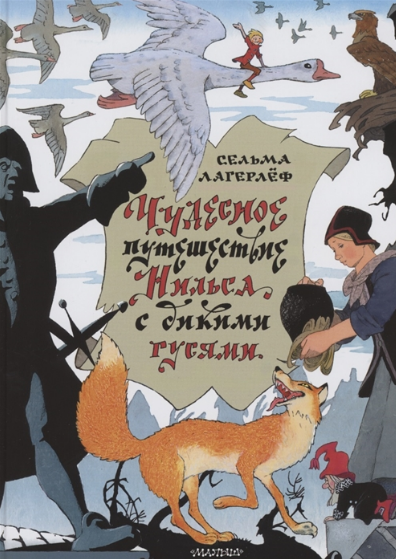 автор — Сельма Лагерлёф, изд. Малыш, 204 стр.      Сельма Лагерлёф (1858–1940) — шведская писательница и обладательница Нобелевской премии по литературе (1909). Одна из самых известных её книг — «Чудесное путешествие Нильса Хольгерссона по Швеции» изначально задумывалась как учебное пособие по географии Швеции. Книгу переводили на многие языки, и в 1940 году советские литераторы Зоя Задунайская и Александра Любарская пересказали это произведение, назвав его «Чудесное путешествие Нильса с дикими гусями». Эта история о мальчике, который путешествовал со стаей гусей, построена на легендах и народных сказках.
