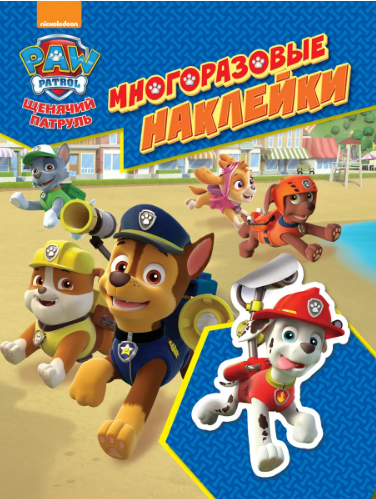 изд. Росмэн, 8 стр. Красочная книга с многоразовыми наклейками, которые ты можешь переклеивать сколько угодно раз, каждый раз придумывая новые истории! Играем и развиваем воображение вместе с Заком Райдером и отважными щенками! Более 50 многоразовых наклеек!
