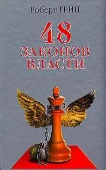 автор — Роберт Грин, изд. Рипол, 768 стр. Это самая аморальная, самая скандальная, самая циничная… и самая правдивая книга о власти, начиная с незамысловатой, бытовой и кончая президентской. Отныне, познав блестяще сформулированные и подкрепленные интереснейшими и неожиданными историческими фактами жесткие и жестокие законы поведения во власти, вы без труда распознаете то, что стоит за теми или иными словами и поступками «маленьких» начальников и сильных мира сего, то, что тщательно они пытаются скрыть. . .»48 законов власти» — настольная книга для тех, кто желает освоить науку управления людьми, безошибочно использовать их слабости для достижения собственного могущества.