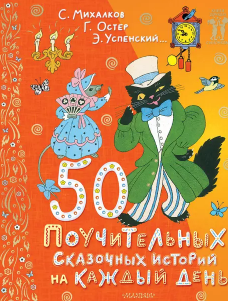 изд. Малыш, серия — Книги дочкам и сыночкам, 128 стр. В сборник «50 поучительных сказочных историй на каждый день» вошли сказки, стихи, загадки о том, как правильно и разумно себя вести, что можно, а что нельзя делать малышу. Наблюдая за поведением животных, сказочных и настоящих, дети учатся выстраивать отношения со взрослыми и сверстниками. Среди авторов издания классики детской литературы С. Михалков, Э. Успенский, Борис Заходер, Г. Остер и многие другие.