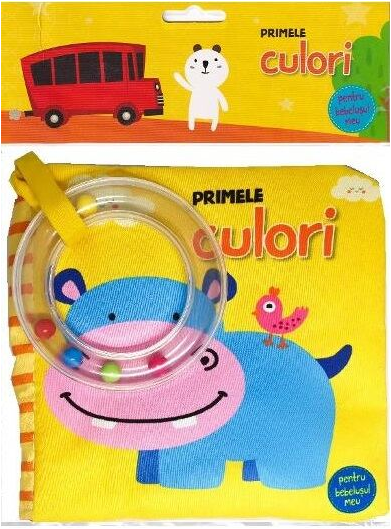 Cartea din material textil are o tematică educativă, ilustrată color în 6 pagini. Cei mici vor putea identifica diverse forme, culori, animale, obiecte, etc.