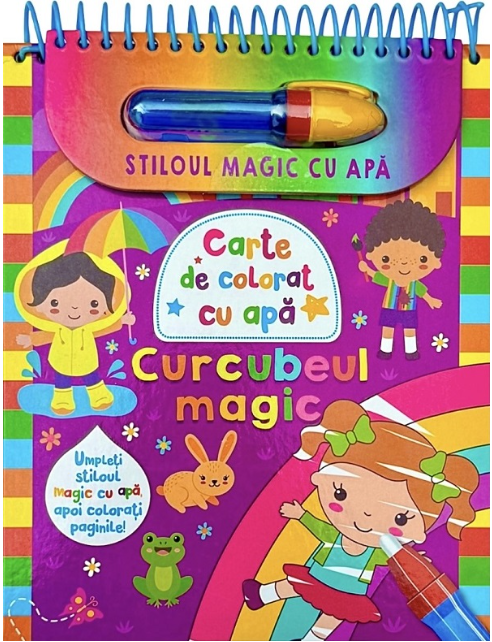 Aceasta carte de colorat le va oferi celor mici o distractie pe cinste! Este foarte simplu: umpleti stiloul magic cu apa, apoi paginile, la contactul cu apa imaginile ascunse vor aparea pentru a fi descoperite de cei mici. Dupa colorarea paginilor, in aproximativ 10 minute, acestea se usuca, revenind la imaginea alba initiala, apoi puteti sa o luati de la capat. AVERTISMENT: Contraindicat copiilor mai mici de 3 ani. Produsul poate contine piese mici care se pot inghiti sau inhala existand pericolul de sufocare sau nu este potrivita copiilor mai mici de 3 ani.