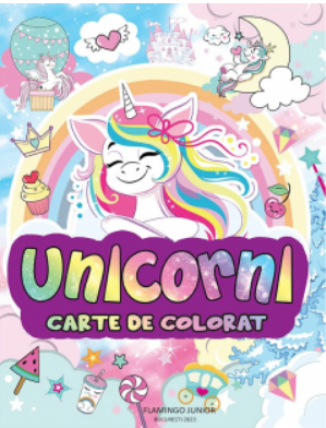 Unicorni — carte de colorat. Flamingo