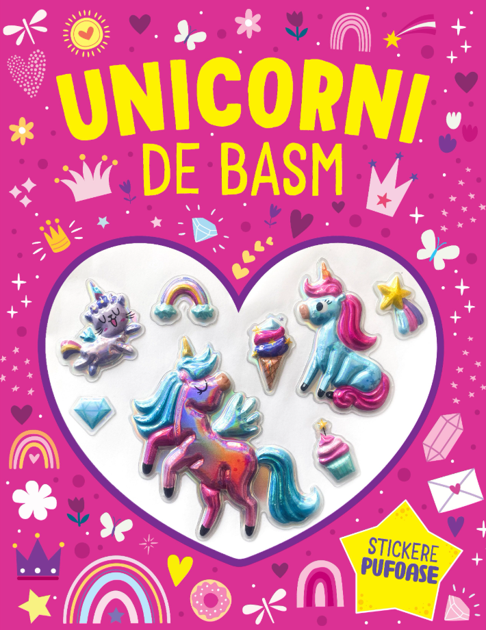 Unicornii te așteaptă în lumea lor de basm, cu jocuri și activități distractive și educative, dar și cu multe stickere pufoase!